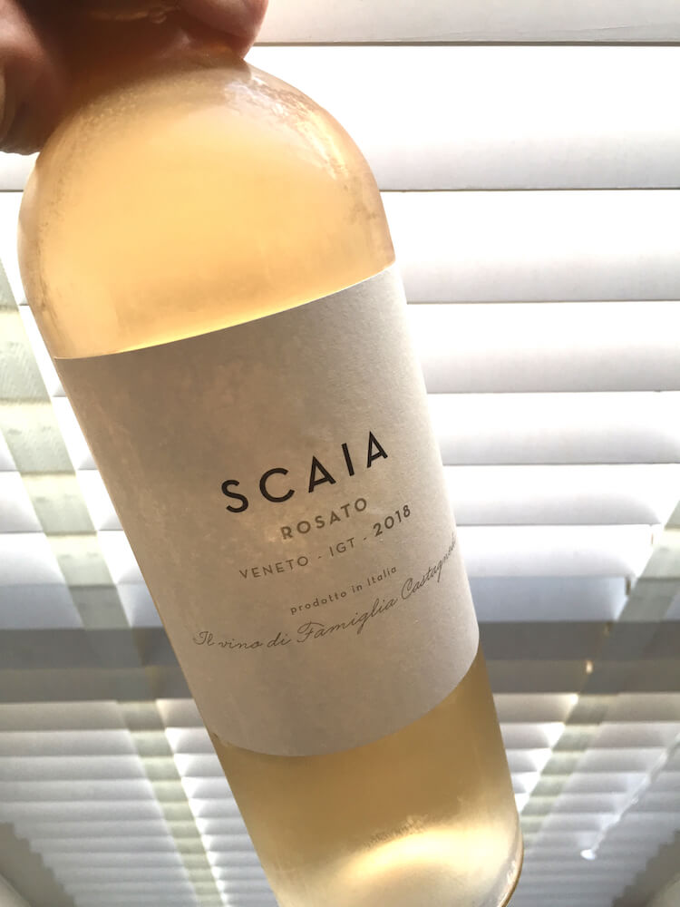 Een IGP-wijn uit de Veneto, gemaakt van 100% rondinella, bekend van de Valpolicella-wijnen (inclusief de Amarone). De druiven krijgen een korte koude inweking, het leksap wordt opgevangen (in feite de saignée-methode dus, want er wordt niet geperst!) en op lage temperatuur (12-13°C) vergist op RVS tanks. De superbleke uienschilkleur laat zien dat ook saignée-rosé deze kleur kan hebben; net als bij vrijwel direct persen of kort schilcontact. Wekelijks vindt bâtonnage plaats voor een extra volle smaak. De wijn heeft 6 g/l zuren en 8 g/l suikers en lijkt daarmee de ‘zoetste’ van het stel – tussen aanhalingstekens, want ook dit mag je een droge wijn noemen.
