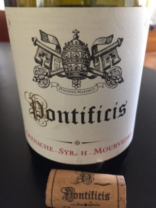 De Pontificis is een GSM-blend (grenache, syrah, mourvèdre) met op het etiket een knipoog naar de ‘pauselijke’ Châteauneuf-du-Pape in de zuidelijke Rhône. Een van de verschillen met Châteauneuf is de boterzachte stijl van deze Pontificis.